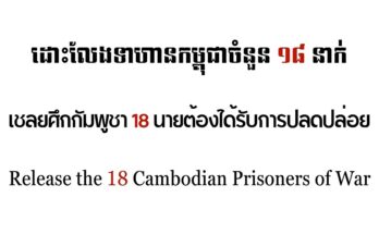សេចក្តីថ្លែងការណ៍រួម សូមដោះលែងទាហានកម្ពុជាចំនួន ១៨ នាក់ ដែលត្រូវបានចាប់ខ្លួន Read More