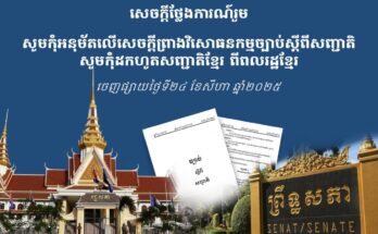 សូមកុំអនុម័តលើសេចក្តីព្រាងវិសោធនកម្មច្បាប់ស្តីពីសញ្ជាតិ សូមកុំដកហូតសញ្ជាតិខ្មែរពីពលរដ្ឋខ្មែរ Read More