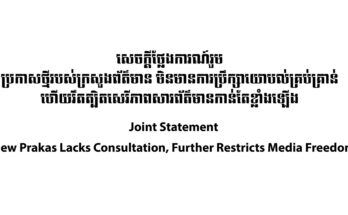 សេចក្តីថ្លែងការណ៍រួម ប្រកាសថ្មីរបស់ក្រសួងព័ត៌មាន មិនមានការប្រឹក្សាយោបល់គ្រប់គ្រាន់ហើយរឹតត្បិតសេរីភាពសារព័ត៌មានកាន់តែខ្លាំងឡើង