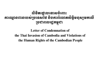 លិខិតថ្កោលទោសចំពោះ ការឈ្លានពានរបស់ប្រទេសថៃ និងការរំលោភសិទ្ធិមនុស្សមកលើប្រជាពលរដ្ឋកម្ពុជា Read More
