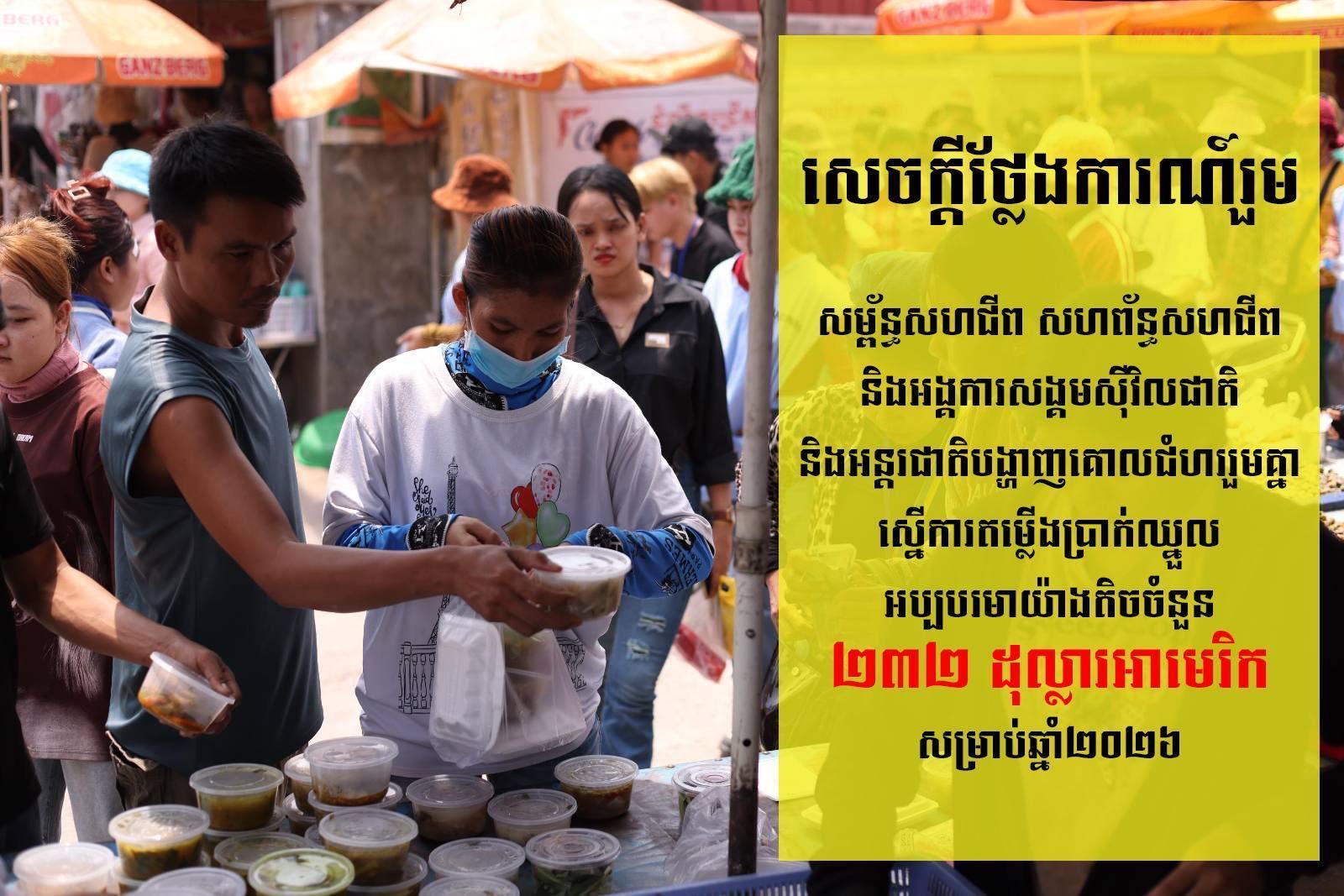 សេចក្តីថ្លែងការណ៍រួម សម្ព័ន្ធសហជីព សហព័ន្ធសហជីព និងអង្គការសង្គមស៊ីវិល បង្ហាញគោលជំហររួមគ្នា ស្នើការតម្លើងប្រាក់ឈ្នួលអប្បបរមាយ៉ាងតិចចំនួន ២៣២ ដុល្លារអាមេរិក សម្រាប់ឆ្នាំ២០២៦
